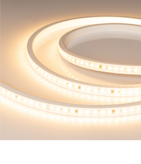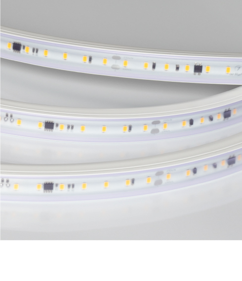 Светодиодная лента серии ARL A84 PV предназначена для декоративной подсветки помещений, подсветки потолочных ниш, рекламных конструкций и витрин в коммерческих помещениях. Лента подключается непосредственно к сети переменного тока 230 В, не требуя использования источников питания. Стабилизаторы позволяют подсоединять ленту длиной до 50 м и обеспечивают равномерную яркость свечения по всей длине. Гарантия — 5 лет.