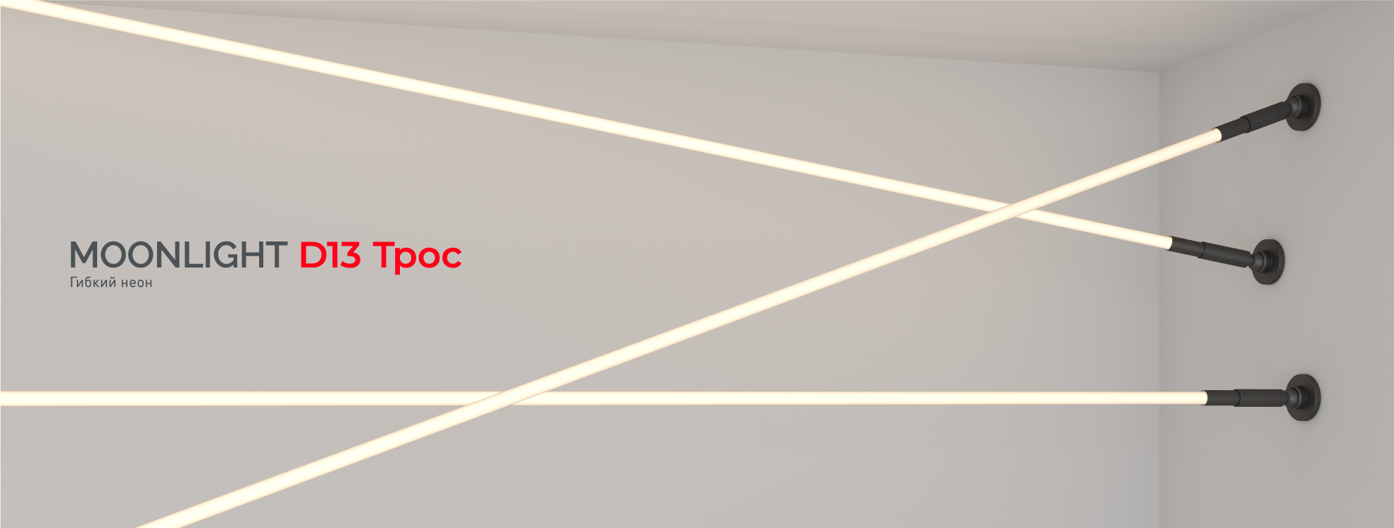 Гибкий неон MOONLIGHT D13 со специальным регулирующим тросом внутри предназначен для создания декоративной подсветки и световых 3D-инсталляций. Благодаря небольшому диаметру (всего 13 мм) он отлично подходит для оформления ниш и элементов мебели.