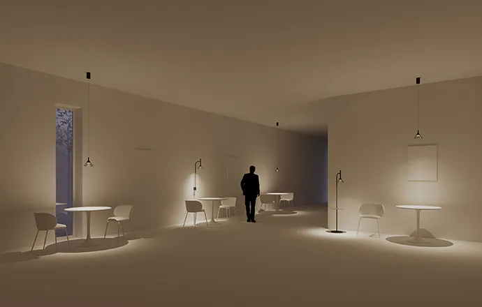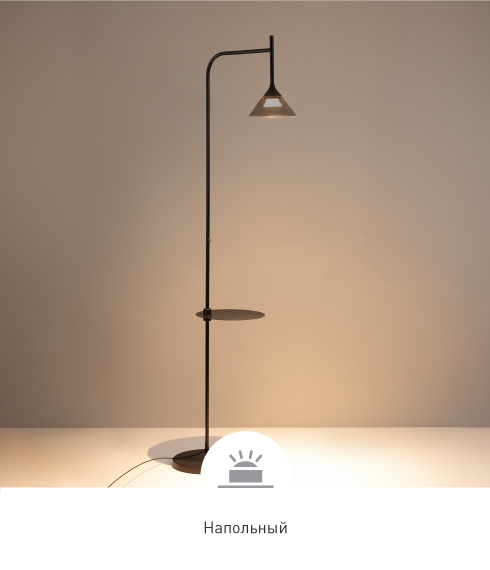 В серии представлены следующие виды светильников: подвесные с возможностью ручной регулировки высоты, напольные со столиком-подставкой, на котором располагается сенсорная кнопка для включения, выключения и изменения яркости света, и настенные, оснащенные накладной базой.