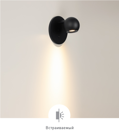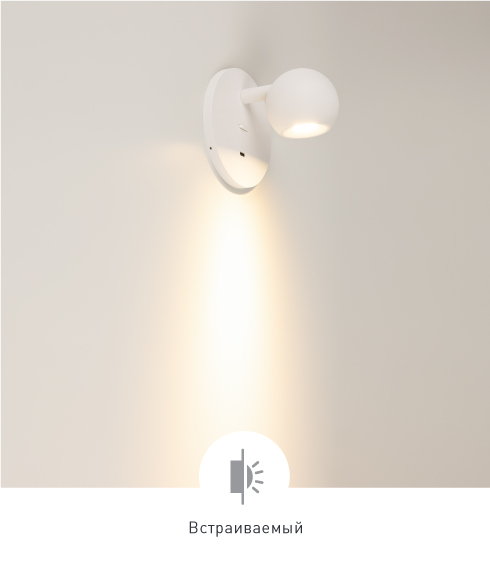 Поворотный, позволяет легко менять направление света. Два цвета: черный и белый.