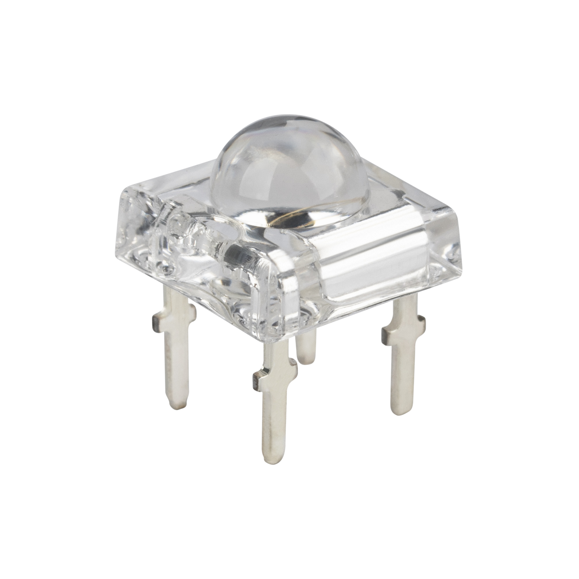 0.2W 4-chip 'Пиранья', линза 5мм, зелёный 515-525nm, cвет.поток 3.5lm, Vf=3.2-3.8v,угол 100градусов. Ширина 6мм, длина 6мм, высота 10мм.
