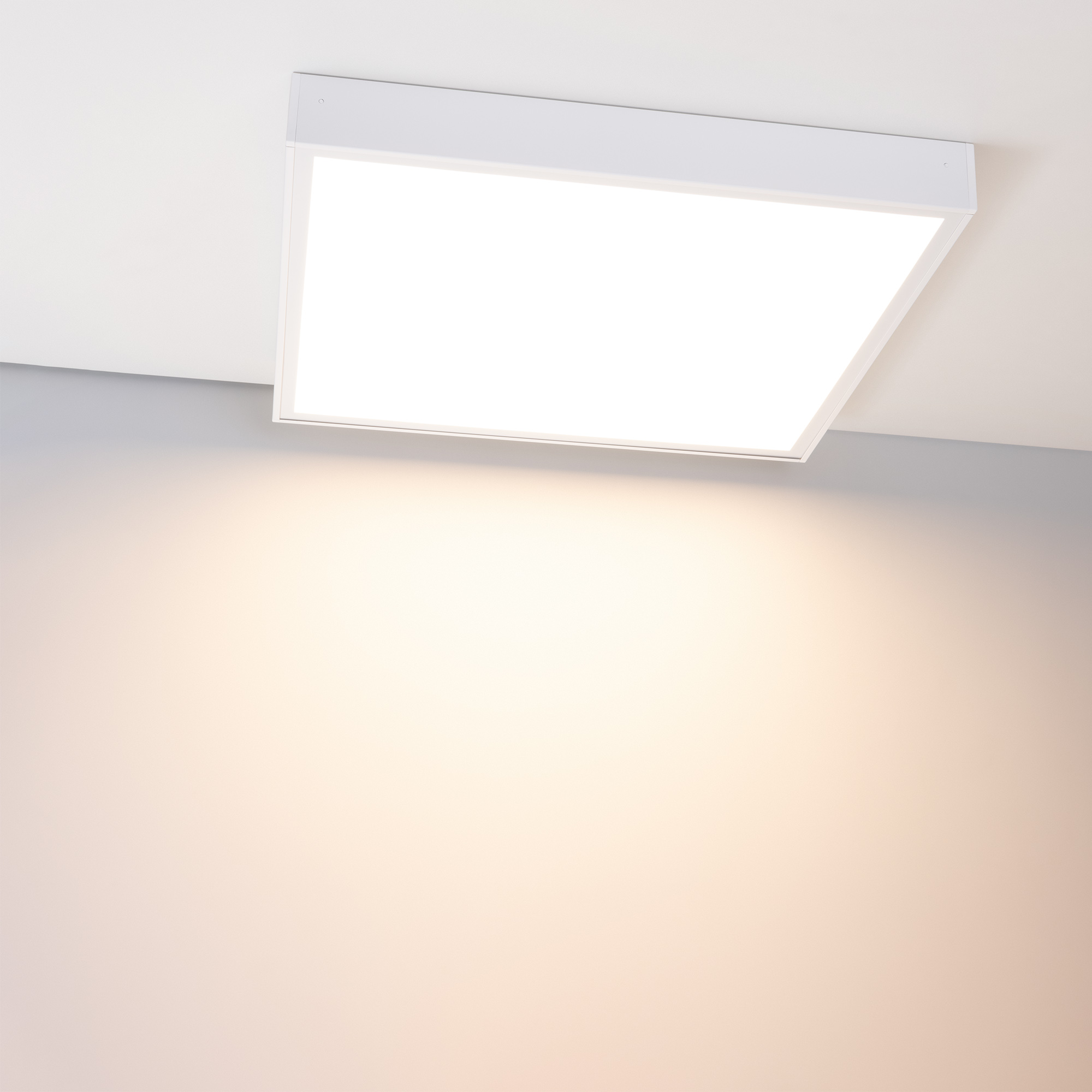 Белая рамка для накладной установки панелей 600х600х30 на потолок или стены. Корпус - алюминий. Поставляется в разобранном виде. Размеры ДxШxВ 600x600x68мм.