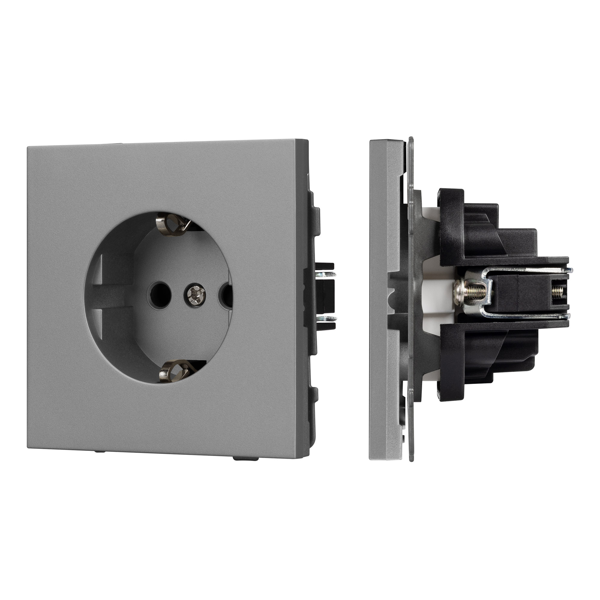Механизм розетки с заземлением на 1 пост. Цвет - серый. Без фронтальной рамки. Уровень пылевлагозащиты IP20. Розетка устанавливается в стандартный подрозетник круглого сечения диаметром 60мм. Габаритные размеры: длина 71 мм, ширина 71 мм, высота 44 мм. Гарантийный срок 10 лет.