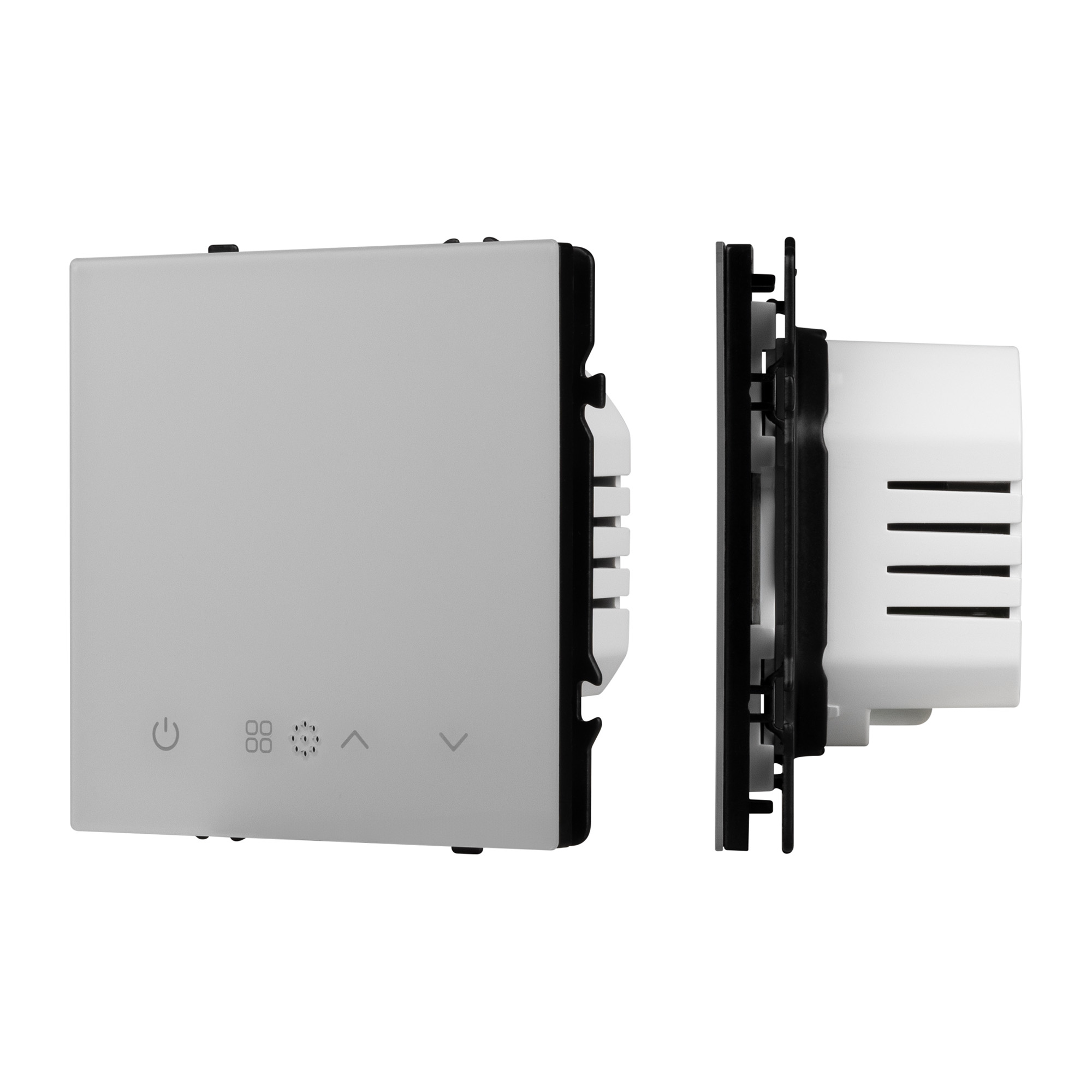 Строгие геометрические линии гармонично сочетаются с функциональностью продуманных механизмов, создавая идеальное решение для дизайн-проектов, где важны как эстетика, так и практичность. Терморегулятор совместим с рамками серии NOBE, создает утонченный минималистичный вид. Скрытый тип монтажа позволяет гармонично встроить в интерьер любого современного дизайн-проекта. Видимая часть механизма выполнена из глянцевого поликарбоната цвета никель, что придает изделию приятные тактильные ощущения и стильный внешний вид. Настройка работы электрического теплого пола осуществляется за счет выбора необходимых значений не посредственно как на самом устройстве, так и при подключении по беспроводной сети Zigbee в приложениях SmartLife и Умный Дом (Яндекс). Суппорт окрашен в черный матовый цвет под основу механизма и выполнен из металла толщиной 1,5мм, что обеспечивает безопасность и уверенность в установке. На каждой стороне суппорта размещены фиксирующие элементы, позволяющие комбинировать механизмы в системы до 5шт как горизонтально, так и вертикально.