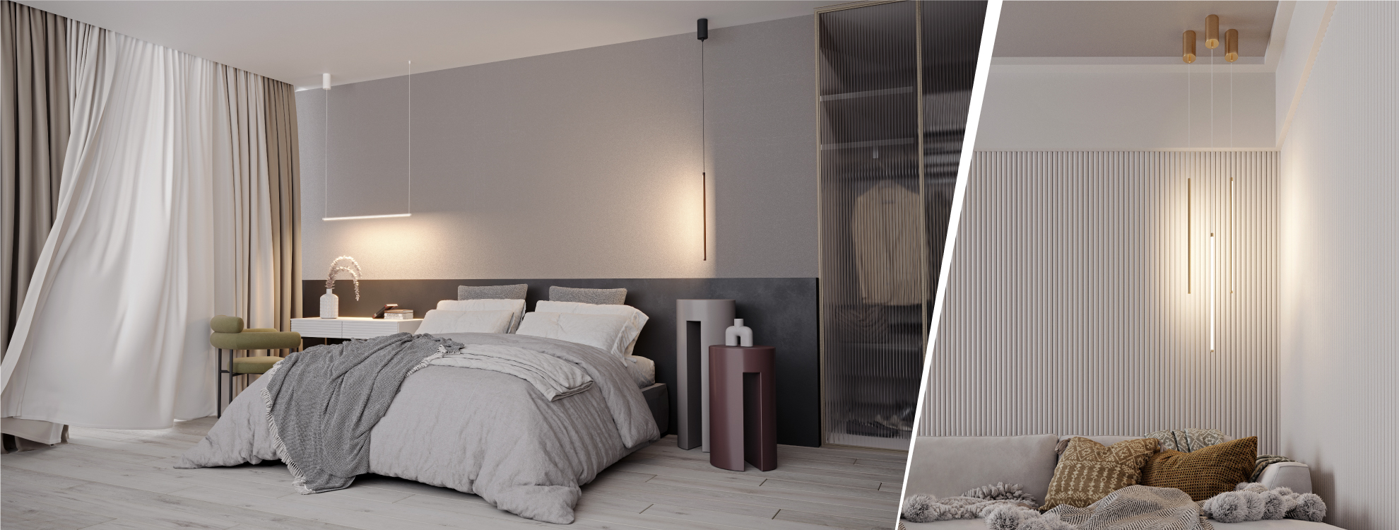 Одинарный подвес и вертикальное свечение. Композиции из нескольких светильников будут стильно смотреться при оформлении гостиных и спальных зон. При размещении светильников возле стены создается красивый эффект отраженного света.